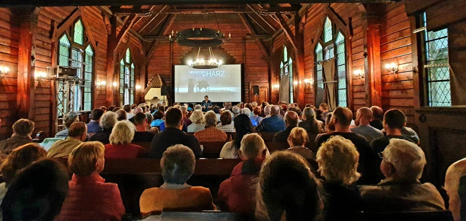 Die positiven Eindrücke und Äußerungen der Besucher nach der Vorführung der Dokumentation „Vergessen im Harz“ Teil 1 rissen beim Verlassen der Kapelle nicht ab. Es war einmalig, an diesem besonderen Ort, dem Albrechtshaus, sowohl das Gelände als auch Geschichte in der Stabkirche zu erleben. Besucher und Vereinsmitglieder wurden noch mehr gestärkt, motiviert, sich dafür einzusetzen, dass dieses wunderschöne Bauwerk nicht auf die Liste der verlorenen Orte gerät .