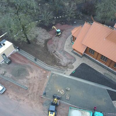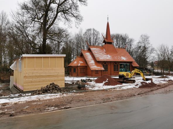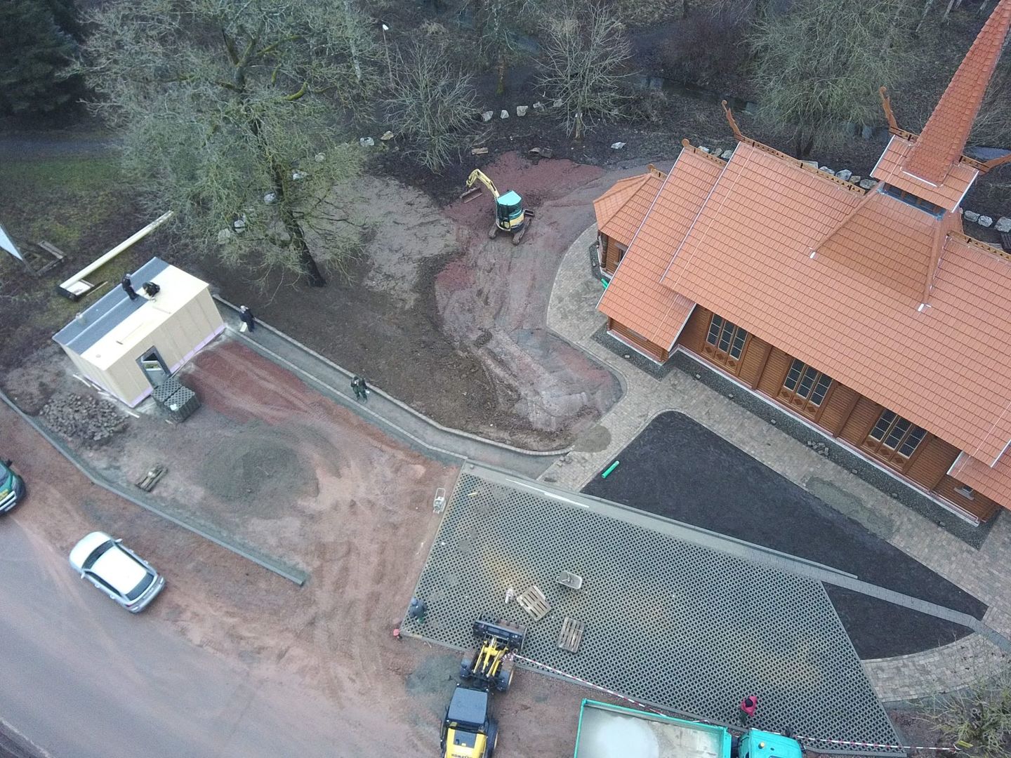 Zurzeit werden die Außenanlagen hergestellt. Es wird gepflastert und die Flächen für die Begrünung vorbereitet. Im Frühjahr wird es eine Blühhecke an den Grundstücksgrenzen geben. Ein kleines Wirtschaftsgebäude, welches etwas abseits aufgestellt wurde, beherbergt ein WC und eine kleine Küche. Wir sind praktisch auf der Zielgeraden. Vielen Dank an alle, die sich in den letzten Jahren aktiv dafür eingesetzt und zum Erfolg beigetragen haben.