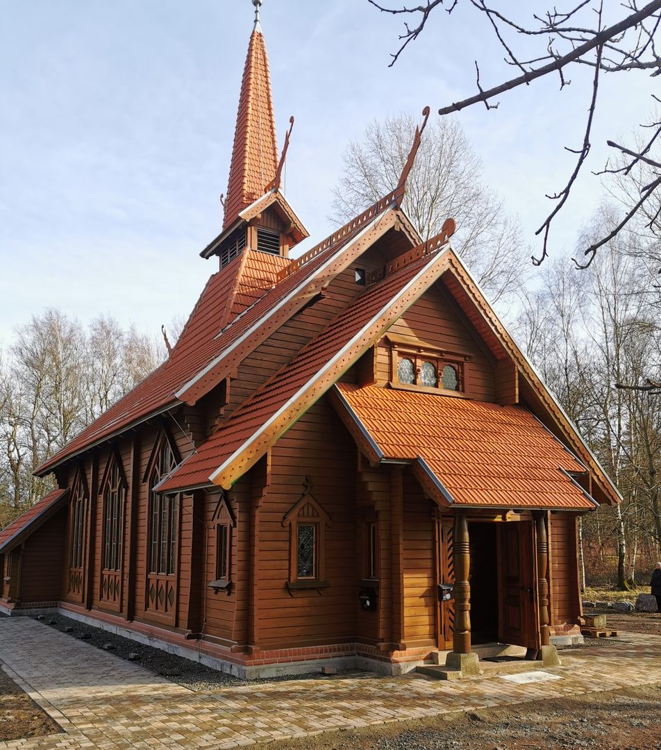 In den letzten Monaten ist rund um die Kirche viel passiert. Im März 2021 wurde die Kirche im Albrechtshaus eingerüstet und in den darauffolgenden Wochen Stück für Stück abgebaut. Nach kurzer Zwischenlagerung begann dann der Aufbau in Stiege. Es war spannend zu beobachten, in welch kurzer Zeit Wände entstanden und das Gebäude Gestalt angenommen hat. Die neuen Dächer und Fenster, der alte, neue Außenanstrich machen unsere Kirche zu einem echten Schmuckstück. Hervorzuheben sind hier besonders die bunten, mit christlichen Motiven gestalteten Chorfenster. Die Glocke hängt an ihrem Platz und hat einen neuen Klöppel bekommen.