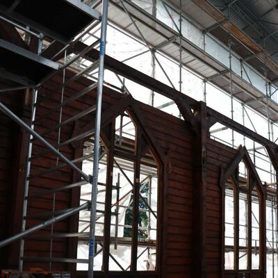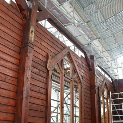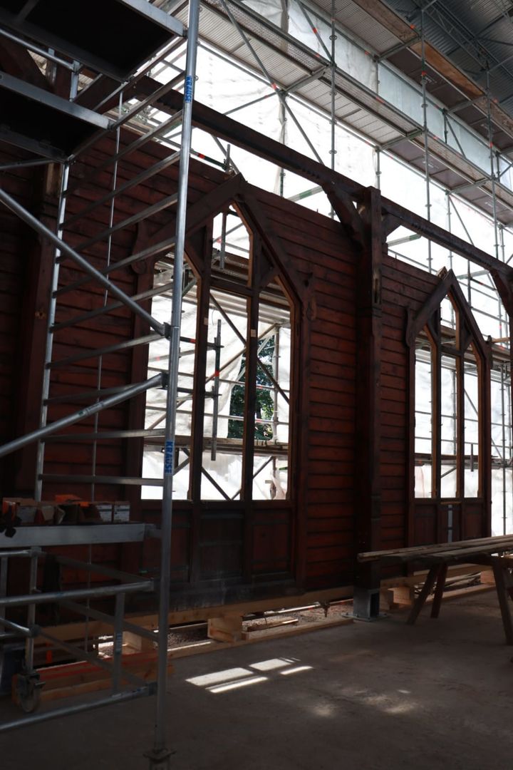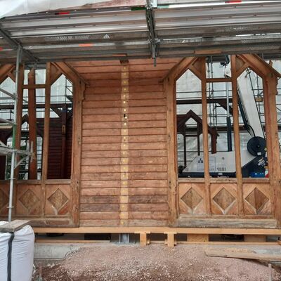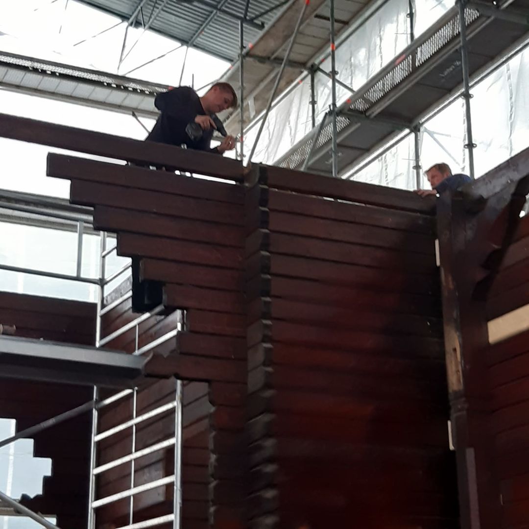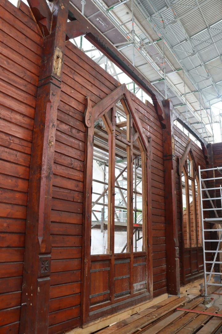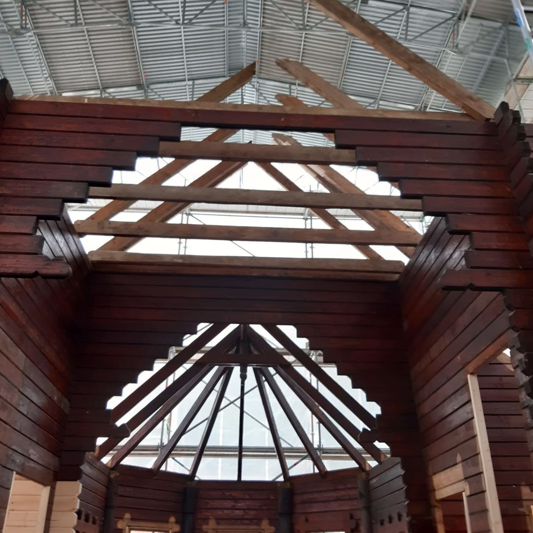 Lange wurde über Bauplänen gebrütet, die Bleiglasfenster werden in der Glasmanufaktur wieder rekonstruiert und die Elemente der Kirche wie ein Puzzle an ihrem neuen Zuhause auf der Bodenplatte zusammengesetzt. Und auch wenn es noch viel zu tun gibt, der Löwenanteil der Arbeiten ist beendet. Das Abbauen und Versetzen war die risikoreichste Aufgabe des Projektes und wo diese nun hinter der Stabkirche liegt, können alle erleichtert durchatmen und sich auf die Rekonstruktion fokussieren.
