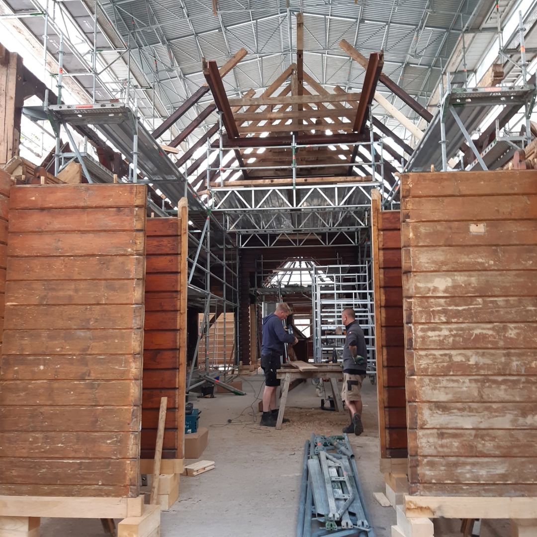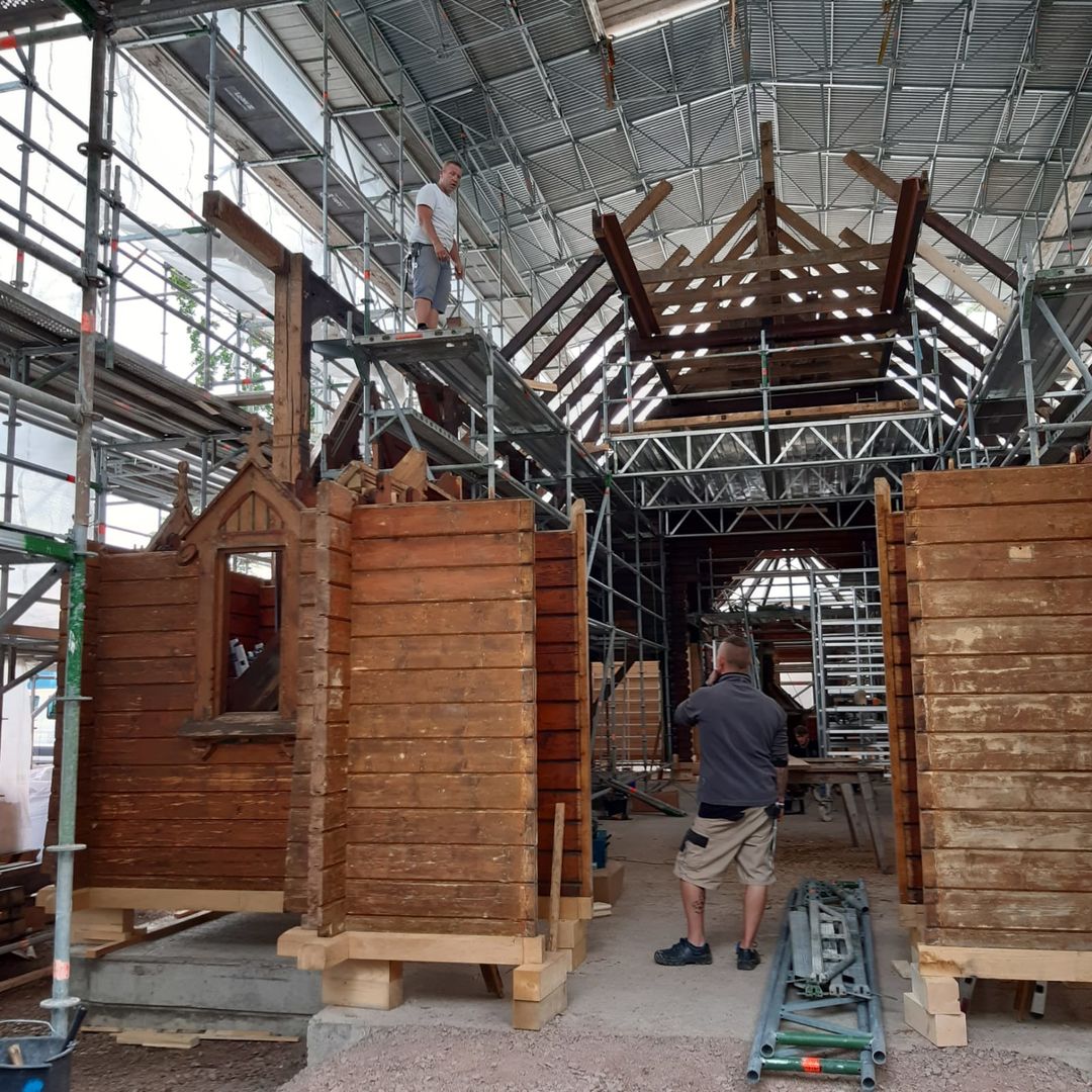 Während der Abbauphase zeigten sich erhöhte Aufwendungen im Bereich der Restaurierung der Kapelle. Reinigung und denkmalgerechte Behandlung der Holzkonstruktion können jetzt dank der Förderung durch die Rudolf-August Oetker-Stiftung ausgeglichen werden.