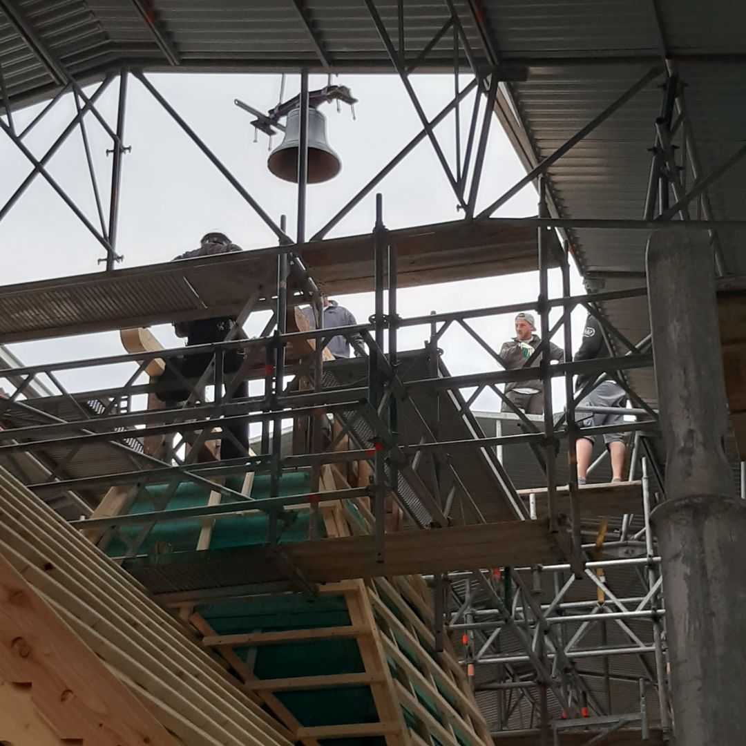 Nachdem die Glocke geputzt und aufgemotzt, der Rost entfernt und der Schuppenpanzer Schmiedelack aufgetragen wurde, erstrahlt diese in neuem Glanz. Dieses Unikat kann sich nun wieder richtig sehen lassen und das Richtfest kann kommen.